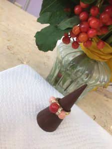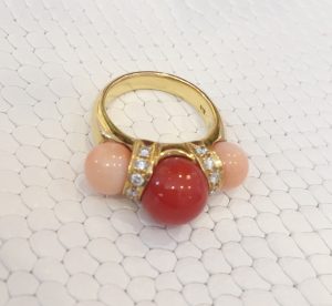 エネルギーと優しさを感じるコーラルのコントラストが魅力のリングです。